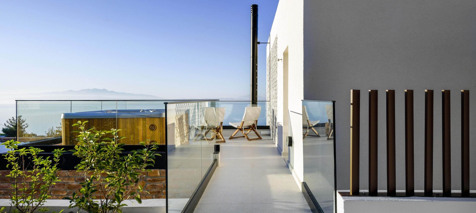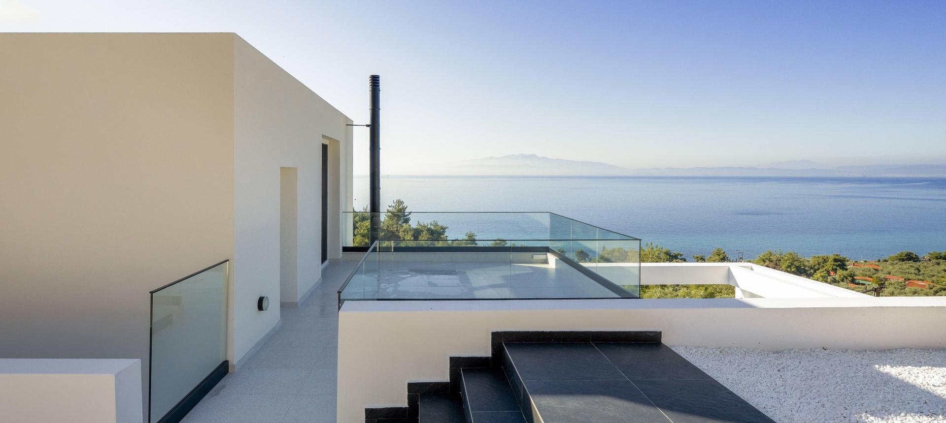 of Greek island Thassos, overlooking the Aegean Sea. Situated on the hill,